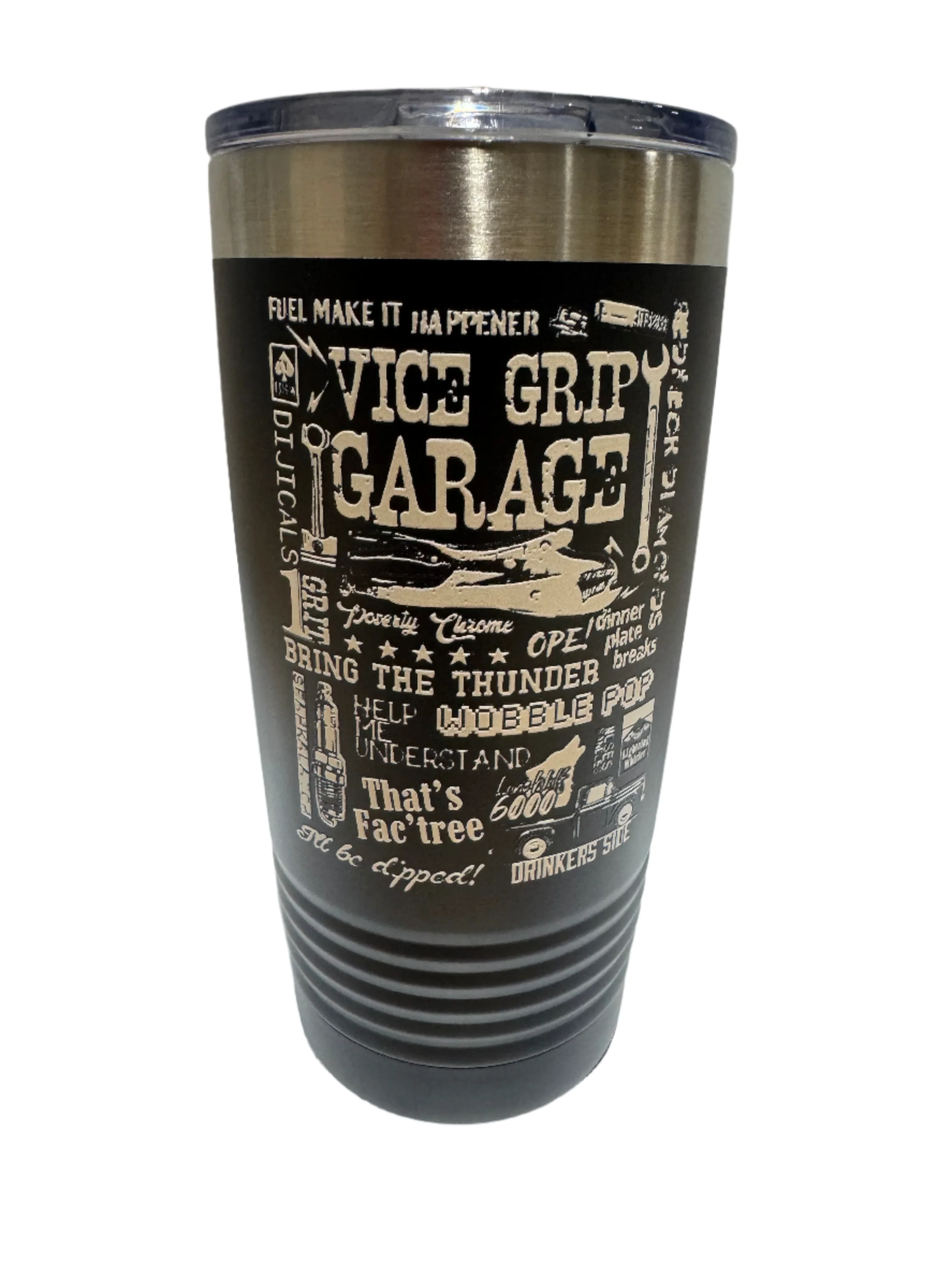 Keep your drinks hot or cold with this VGG Derekisms tumbler. Choose Black or White style.
